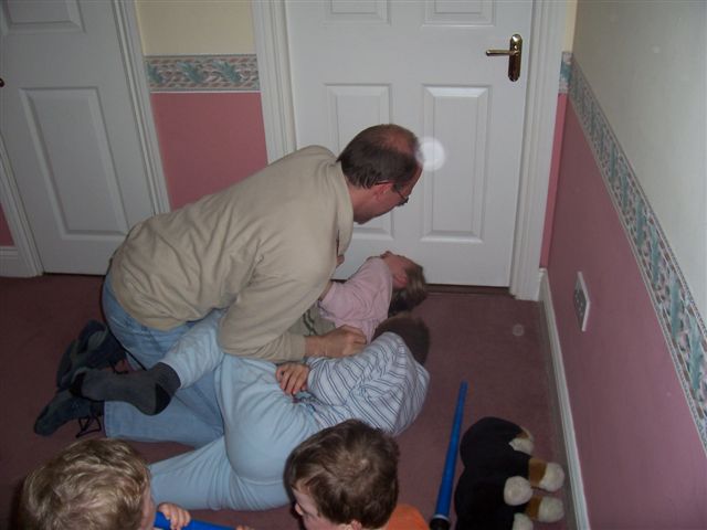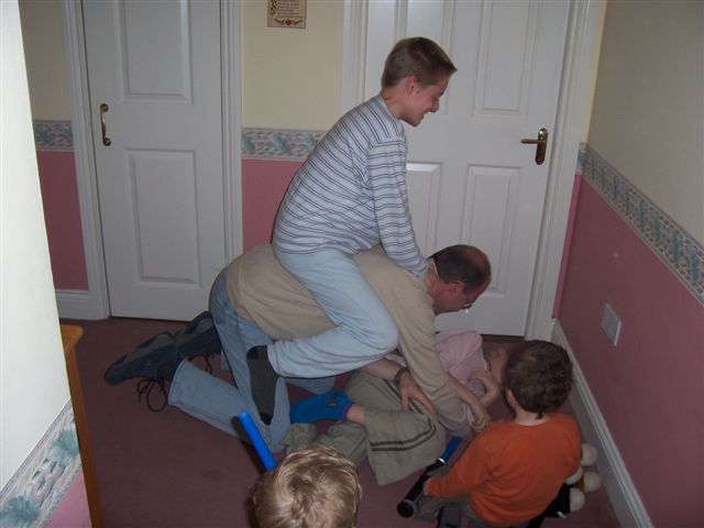 Ähm - räusper - naja - eigentlich sollen die Großen wegen der Kleinen nicht im Hause toben, sondern draussen, weil es drinnen ziemlich eng ist - aber das konnte ja Papa Ritter schließlicht nicht wissen und Spaß hatten sie allemal.