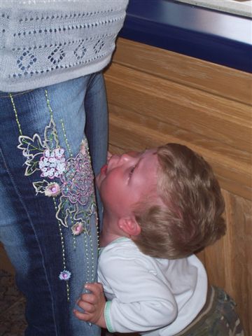 Der Kleine hat eine enorme Ausdauer, was das wehleidige "Hörtmichdennkeiner"-Weinen angeht. Übersetzung könnte lauten: "Du bist aber auch eine Rabenmutter: Kochst und machst noch meine Flaschen sauber und läßt mich hier unten rumheulen.