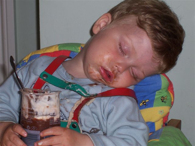 . . . .dass man einschläft . . . ja, ein paar Tage zuvor gab es schon mal ein Schokopuddingfoto von Mini-Kindersegen und nein, es gibt nicht nur Pudding im Hause Kindersegen, aber Mama Kindersegen hat ihren heißgeliebten Schokopudding wieder gefunden mit der Entdeckung des Lidl-Marktes, so dass es diesen eben ziemlich häufig zum Nachtisch gab nach einem fantastischen Essen.
