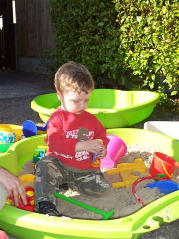 Volle Konzentration - wie sich wohl Seifenblasen und Sand vertragen? - Er hat es nicht testen können, sie waren leer.