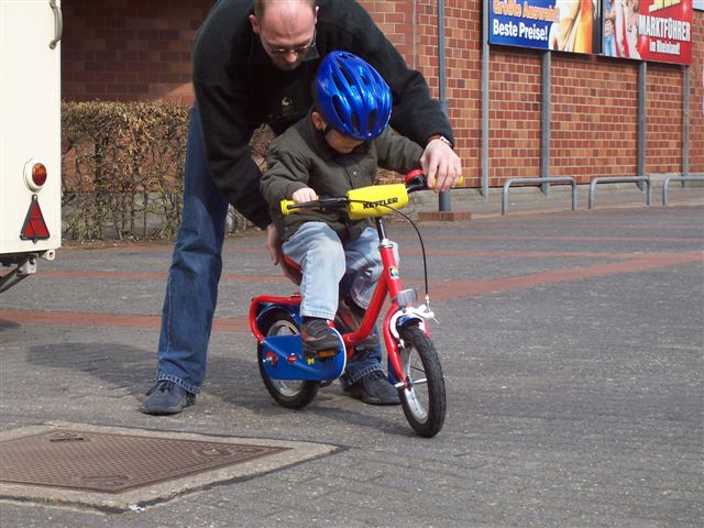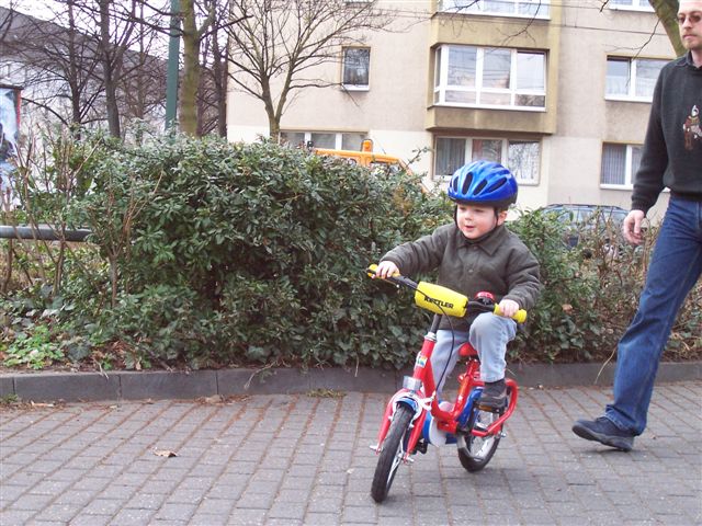 Wie kann das sein? Ist es tatsächlich schon ganze drei Jahre her, dass dieser kleine Radfahrer da noch in unseren Armen gelegen hat und versucht hat, uns bewußt und noch dazu hinreißend anzulächeln? Dass er noch nicht einmal wußte, was Fahrräder überhaupt sind? ....Mami war heute verdammt nah am Wasser, als der kleine Wirbelwind so mir-nix-Dir-nix einfach mit seinem Fahrrad losgedüst ist, strahlend auf sie zugeradelt ist und mit seinem frechesten Grinsen radfahrend einen Haken schlagend, wie es sonst nur der Hase kann, um sie herum gefahren ist.