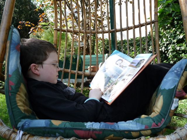 unser Großer ganz versunken in seiner neuen Lektüre