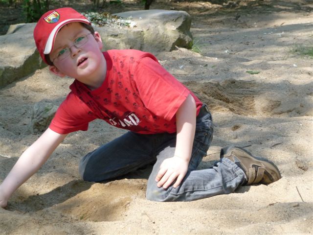 Er fühlt sich in der Sandkiste immer noch puuuuuudelwohl - Gott sei Dank!