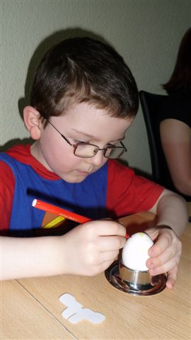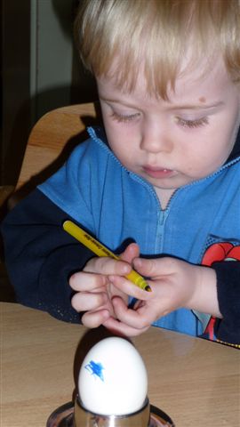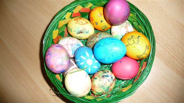 Ostersamstag haben wir dem Osterhasen geholfen und Eier verschönert.