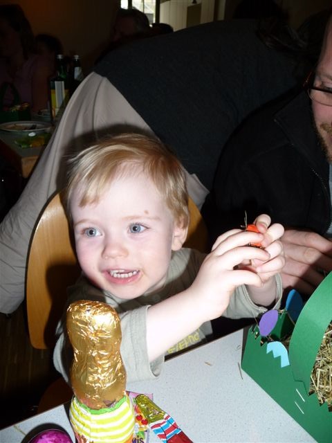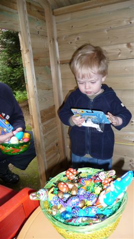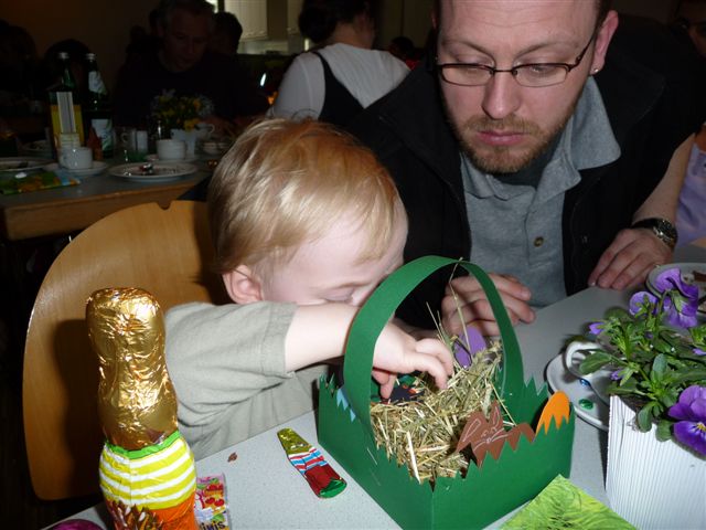 Ostern wurde schon im Kindergarten mit einer gaaaanz tollen Osterfeier "eingeläutet". Erst gab es selbstgebackenen Kuchen, Kaffee, Kakao oder Saft und Wasser, danach haben ein paar Kinder ein Frühlingsstück aufgeführt und dann kam auch noch der Osterhase zu Besuch und hat jedem Kind ein Osterkörbchen mitgebracht. Schön wars mal wieder - wie immer und bei dem Lied "Stups der kleine Osterhase" beschlich Mami ein bisschen Wehmut, gleichzeitig auch Freude - war es doch das letzte Osterfest für Lars im Kindergarten, ab nächstem Jahr wird er "nur noch" als Geschwisterkind dabei sein. Lang ist es nicht mehr bis zu einem neuen Lebensabschnitt für unseren Großen......