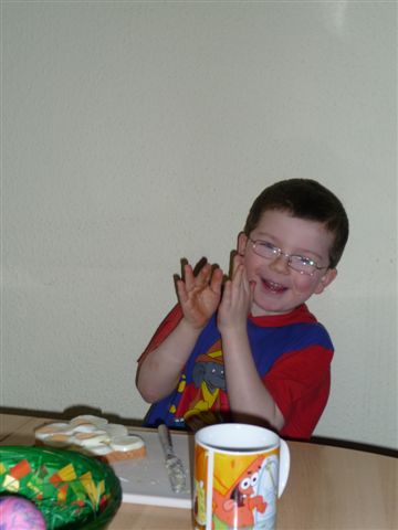 der Schelm hat gleich die Oster-lachgummis verputzt.