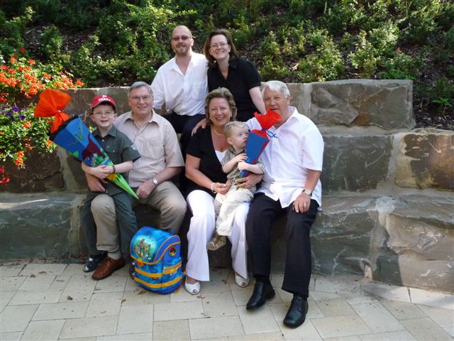 Danach haben wir noch die Einschulungsbilder auf der Terrasse der OGS gemacht: