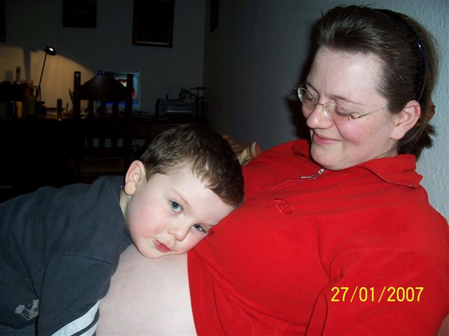 Mit dem kleinen Bruder schäkern und ihn vor der Fotoknipserei beschützen und kuscheln sowieso..... das macht unser Großer im Moment ganz oft. Und so langsam wird er auch ungeduldig. Er ist der Meinung, dass unser Kobold nun groß genug sei und rauskommen könnte.