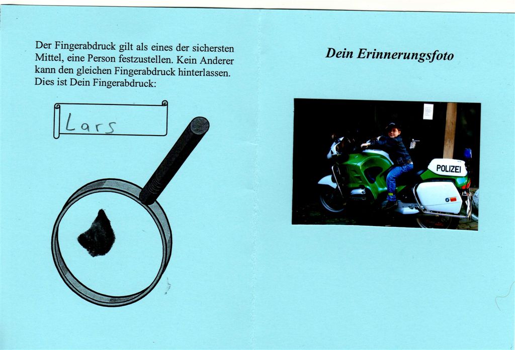 Einer der Ausflüge der TOP-Kinder ging zur Polizei - das hier ist ein Teil der Einnerung daran.