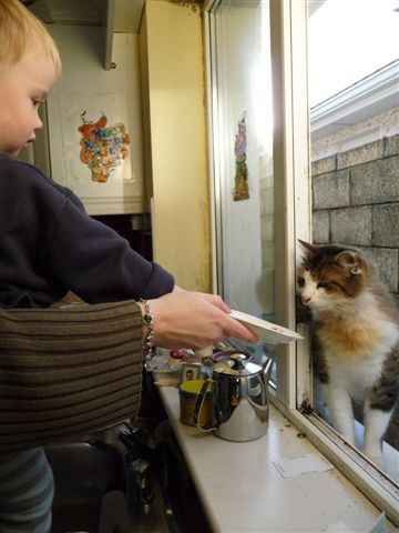 Und freut sich wie Bolle, dass die Katze auch kam....