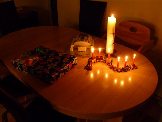 Der Geburtstagstisch - abends stellt Mami immer schon alles zurecht.