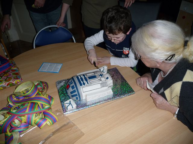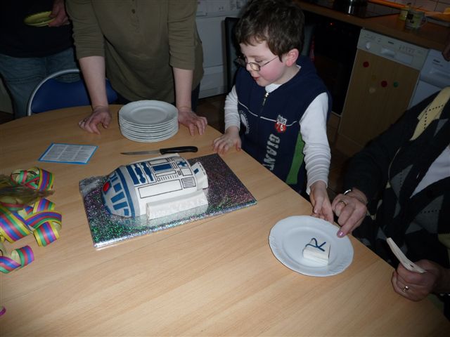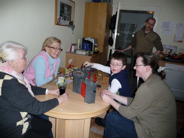 endlich sind alle da - naja, fast - und der Kuchen wird offiziell angeschnitten....