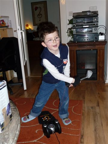 Und zum Abend hat Papa die Playstation mit Golfsimulator hervorgekramt. Und der kleine Große war richtig, richtig gut.
