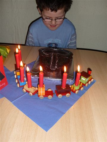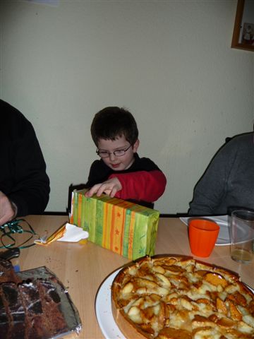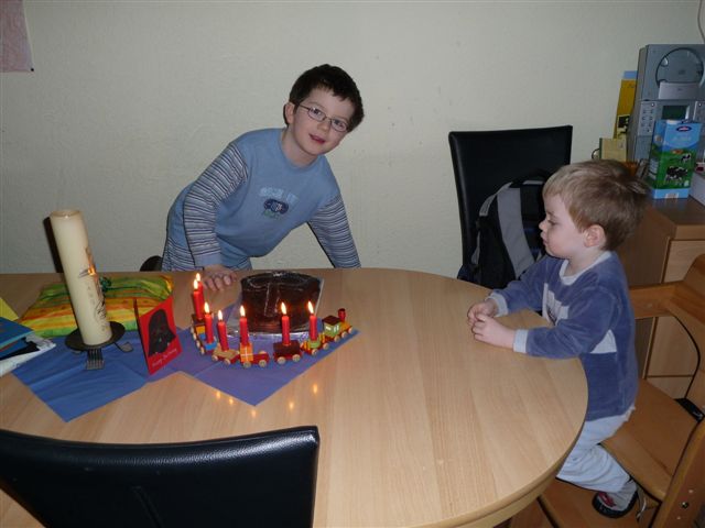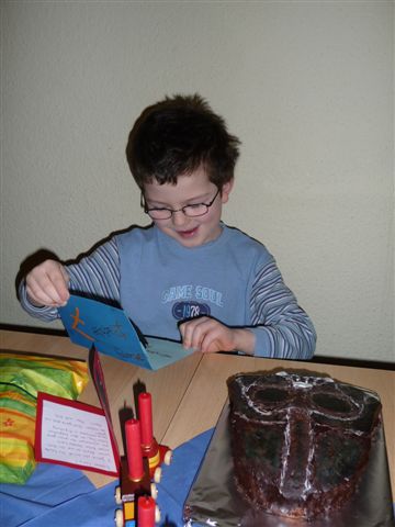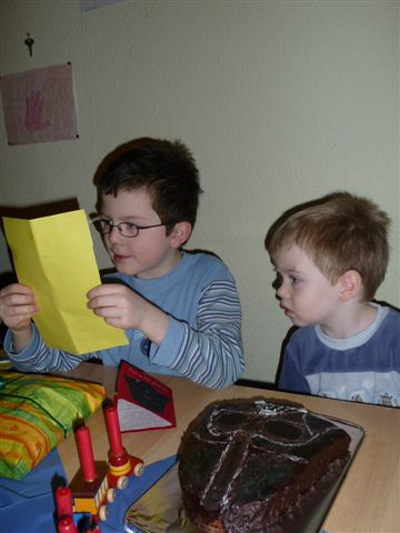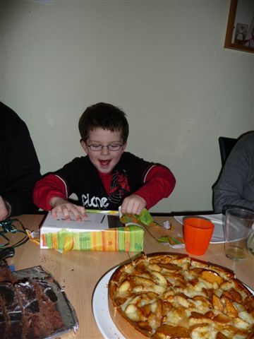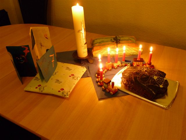 Als alle Gäste da waren, hat er seinen Kuchen angeschnitten.....