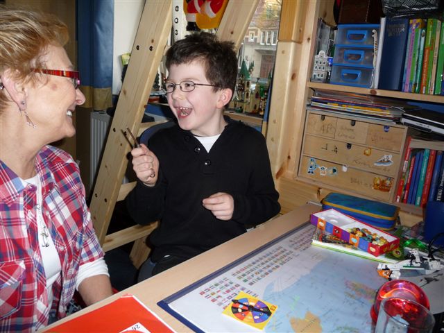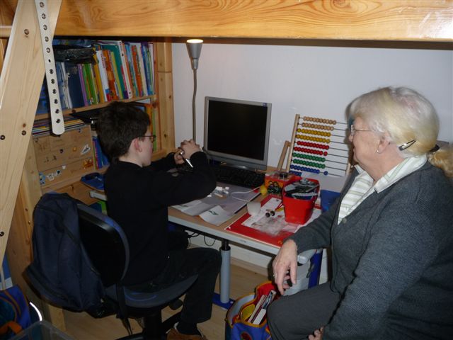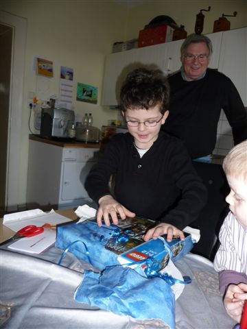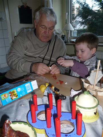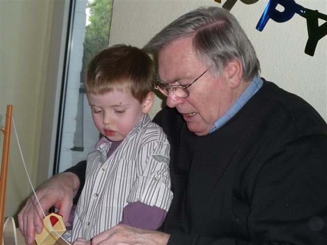 Omi baut mit Lars eines der Geschenke zusammen.