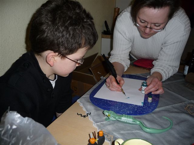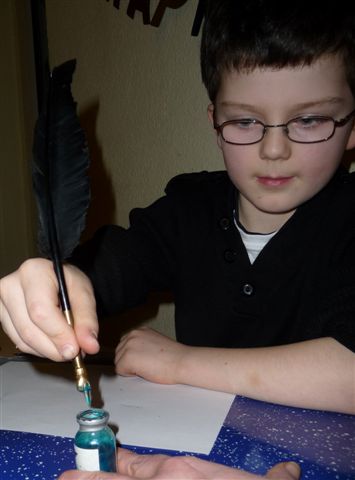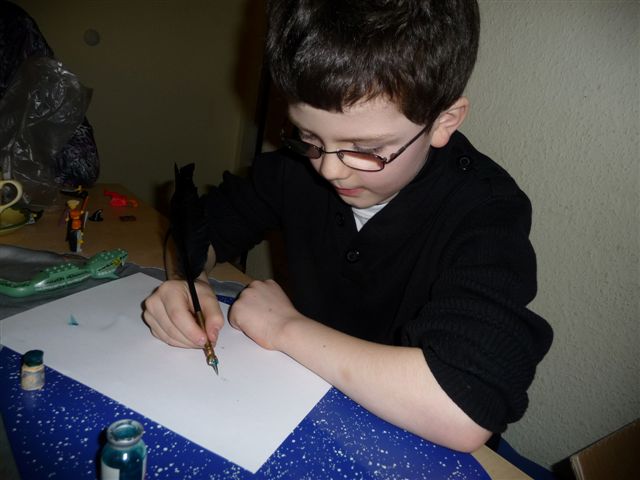 Dem Kobold haben wir dann auch noch eine Schreibfeder gebastelt.