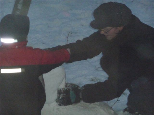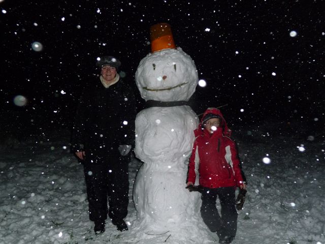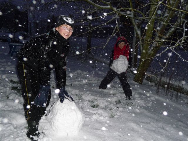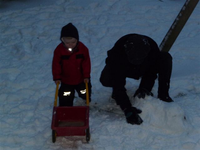 Der Große baut derweil mit seinem Kumpel einen Schneemann....