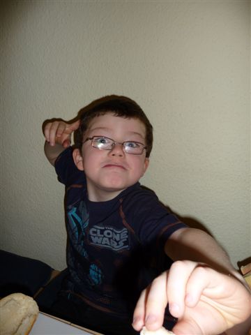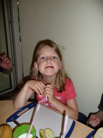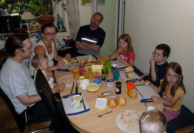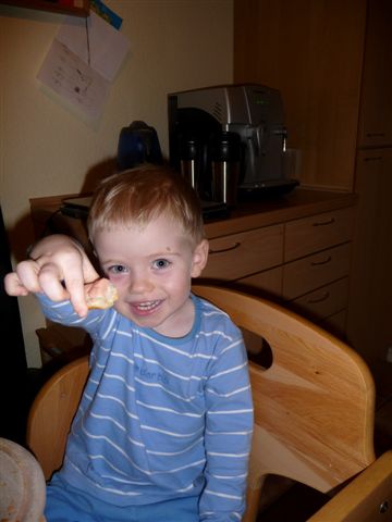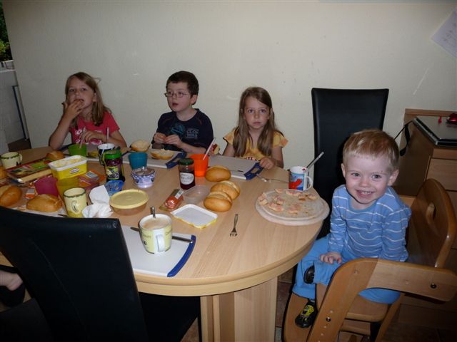 "Weggegangen - Platz vergangen" - Das jüngste Lämmchen hat sich flugs auf Nils Stuhl verpflanzt und verputzt sein Brötchen...