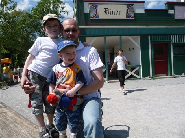 Warten auf Papa und Lars, die die Iglufahrt mitgemacht haben - Nils war zu klein dafür, Mindestgröße dafür sind 120 cm.