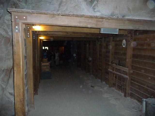 Ganz mutig ist Nils in den dunklen Stollen marschiert und in dreifachem Tempo wieder rückwärts rausgelaufen, als die Stimme des Goldgräbergeistes ertönte. Der Krümel wollte ganz schnell da durch, auf Mamas Arm in Sicherheit....