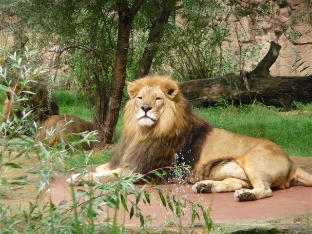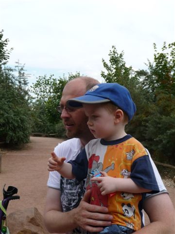 Der "König" von Afrika - gebrüllt hat er und der arme Krümel hatte schon wieder ein bisschen Angst. Die Tiere wirken aber auch sooo nah und doch ist man als Besucher sicher. Als er aufhörte zu brüllen und sich in die Sonne legte - war Nils schon wieder mutig "Eia, Wuaaarhhh, ich da, wuuaaarhhh"...