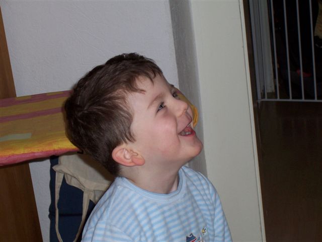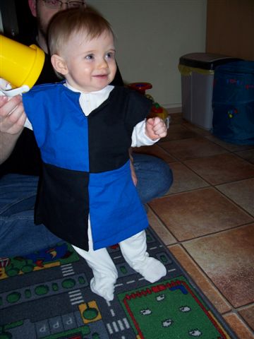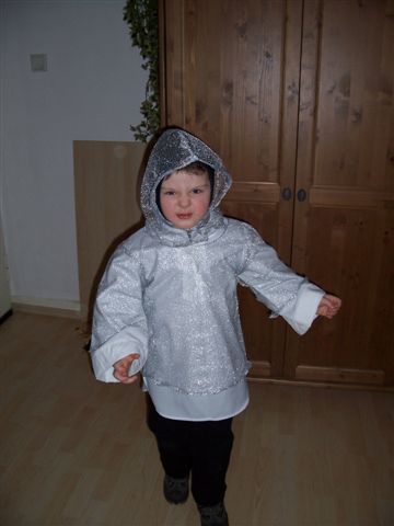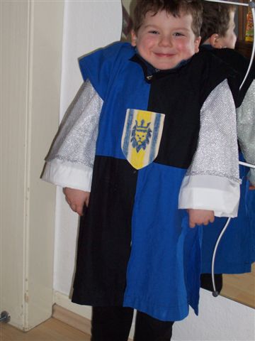 Tja und eigentlich hätte der Krümel als Miniritter am Rosenmontag hervorragend zum großen Ritter gepasst. Aaaaber, Mami saß noch an den letzten Nähten am Miniwaffenrock, da hörte sie Weinen und fand den Krümel inmitten seines Mageninhalts. Den Rosenmontag hat er mit so gerade eben genug trinken und gaaaaanz viel schlafen zu Hause verbracht.