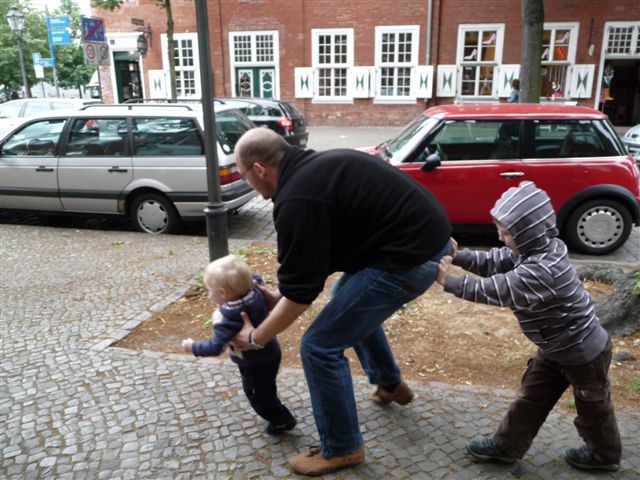 Papa und seine Jungs beim rumalbern in der holländischen Siedlung.