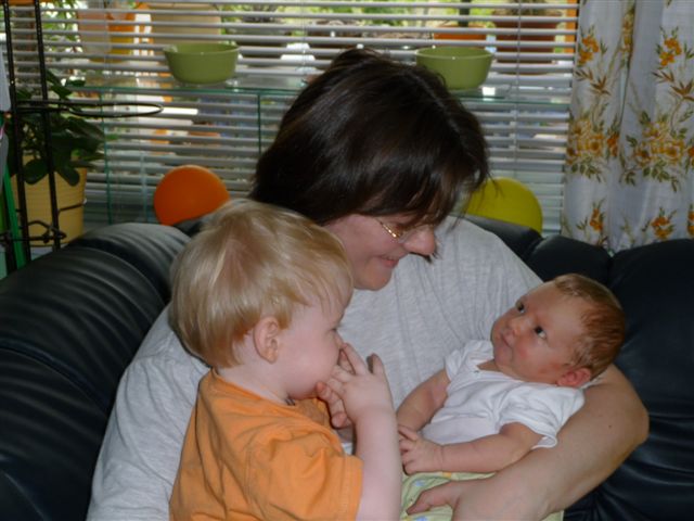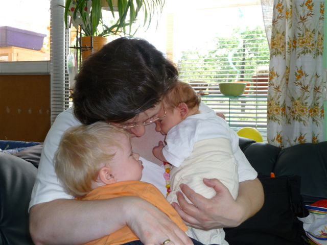 Mami kuschelt auch - Nils hat sich anfangs Mami gesichert und wollte mitkuscheln, hat Michelle "gezeigt", was seins ist und hat Mami von da an auch alleine Babykuscheln lassen...