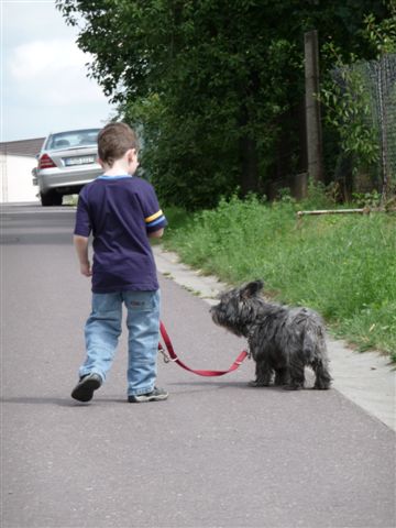 Bevor wir uns endgültig schweren Herzens verabschieden, spaziert Lars ganz stolz mit Rambo ein paar Meter alleine.
