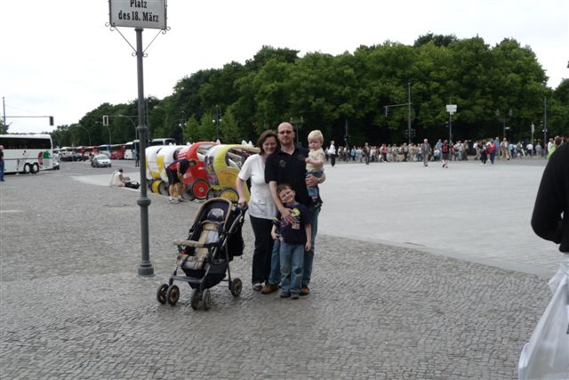 Eine andere Touristin war so lieb und hat ein Familienfoto von uns gemacht auf dem Platz des 18. März, unmittelbar vor dem Brandenburger Tor.