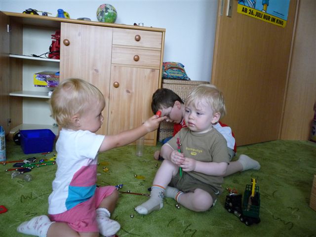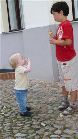 Niklas - der Große von Heidi - wird hier von Nils bewundert oder will unser Krümel doch nur an das Eis?