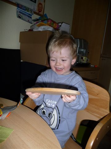 ganz stolz mit seiner Geburtstagskarte vom Kindergarten...