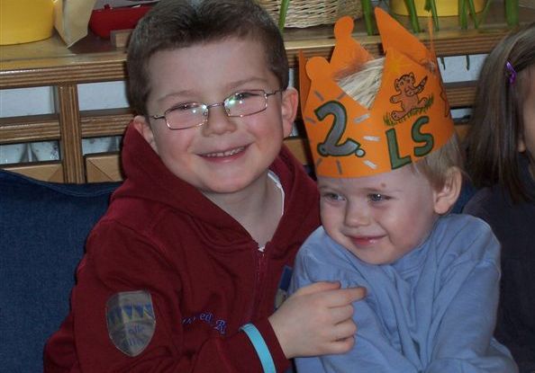 Mit Lars auf der Geburtstagscouch im Kindergarten.....