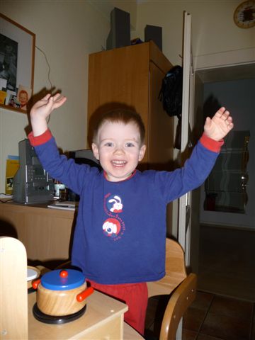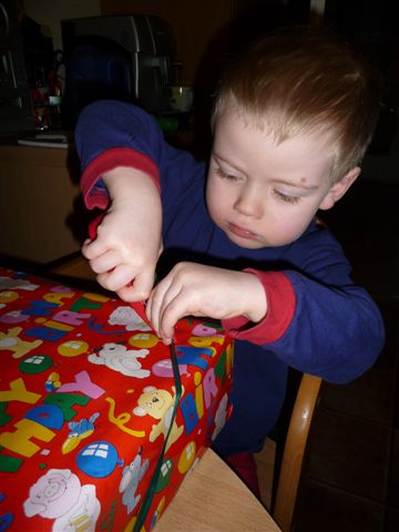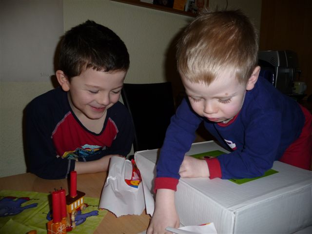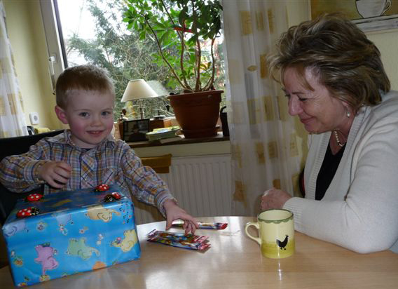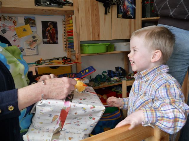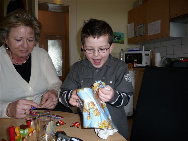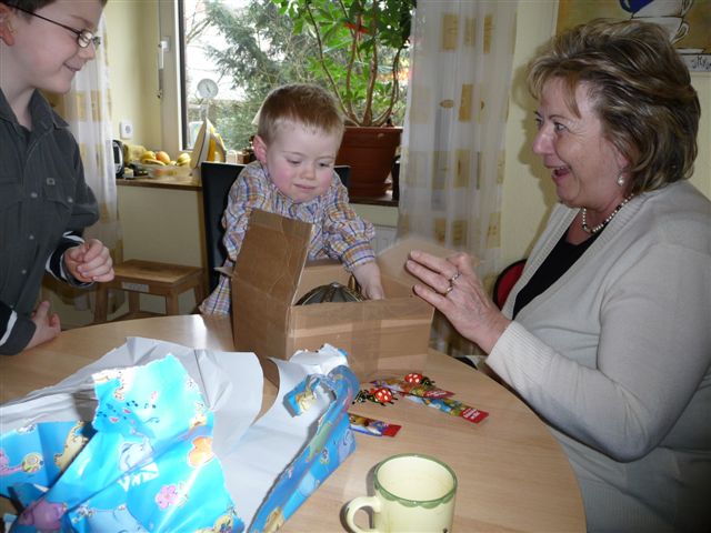 Omi kam schon am frühen Nachmittag und natürlich bekommt der große Bruder auch eine Kleinigkeit - womit sie offenbar ins Schwarze getroffen hat...