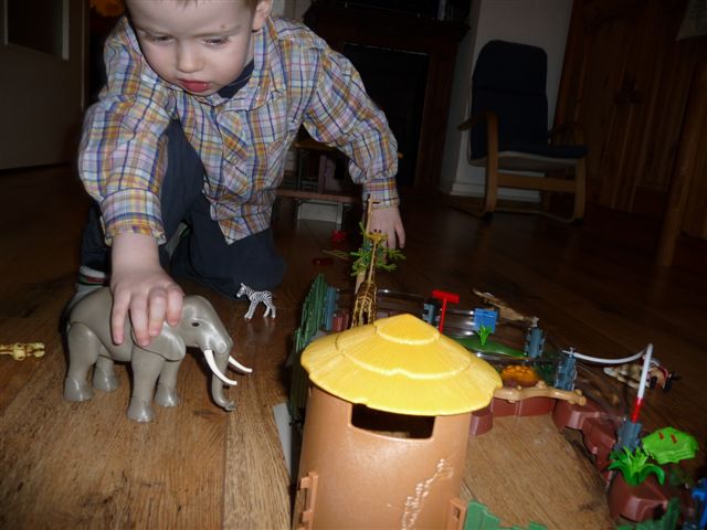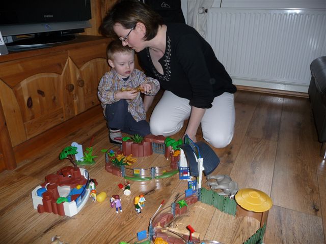 Der Zoo wurde eifrig bespielt.....mit Omi und großem Bruder...
