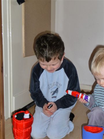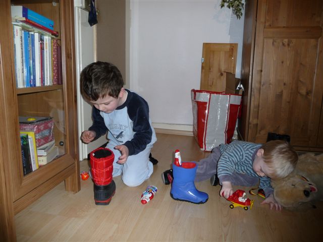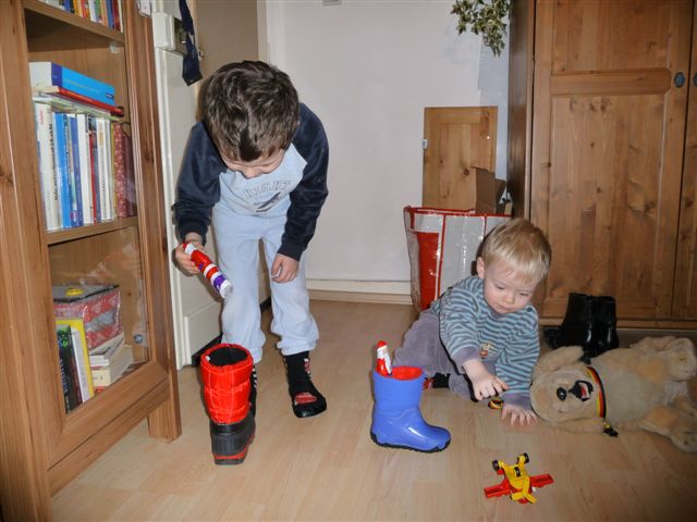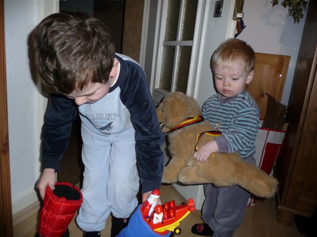 06.Dezember - Nikolaus. Lars hat gestern Abend die Stiefel rausgestellt, seinen und den von Nils. Und heute morgen konnte er es kaum abwarten, die Tür zu öffnen.