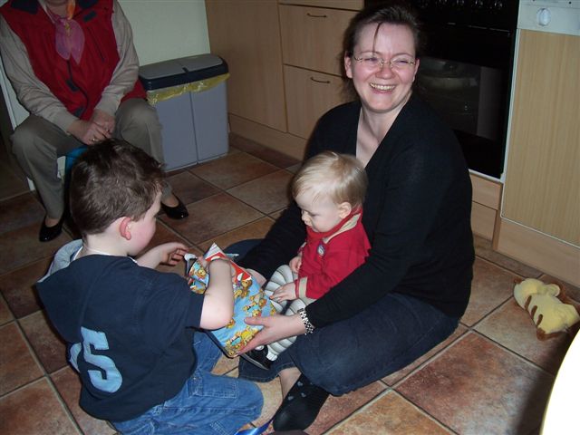 ....allerdings ist Nils - der Kindergarten hat ganz schön geschlaucht und da hat er um elf schon ein Stündchen geschlafen - dann nachmittags irgendwann ins Land der Träume gefallen und so hat Lars in Vertretung den Kuchen angeschnitten.