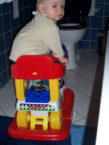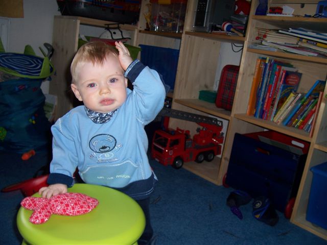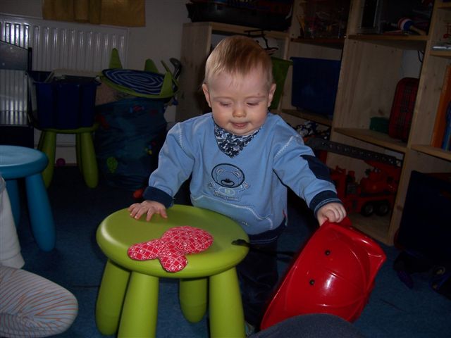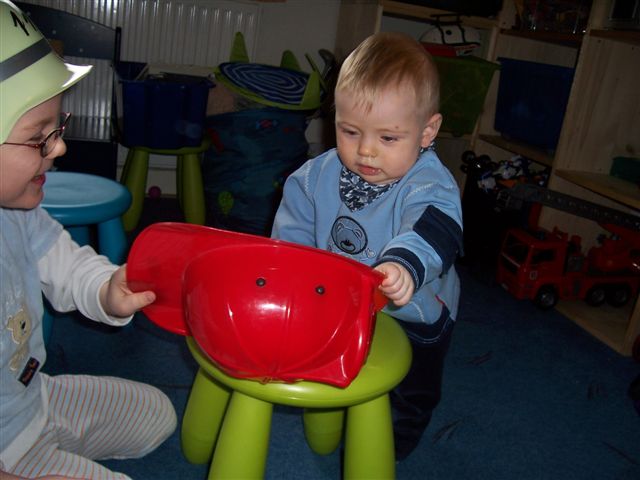 Nils hat sich tatsächlich den Helm immer wieder aufsetzen lassen um ihn immer wieder runterzu nehmen.