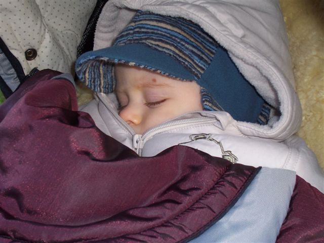 Während der eine friedlich warm eingepackt schlummert....