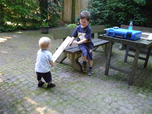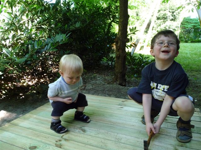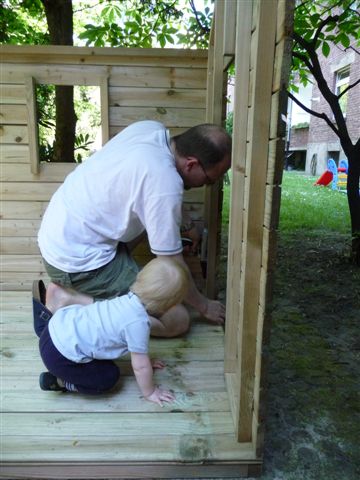 Komm Lars, wir helfen beim Dach.