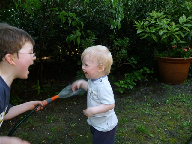 Die Zwei hatten beim Blumengießen einen Heidenspaß!