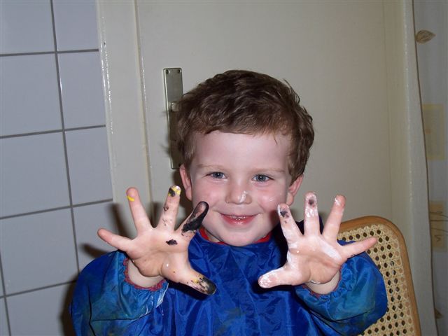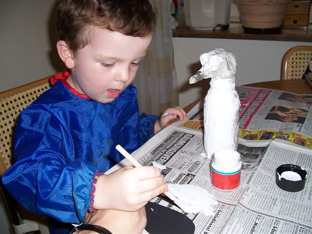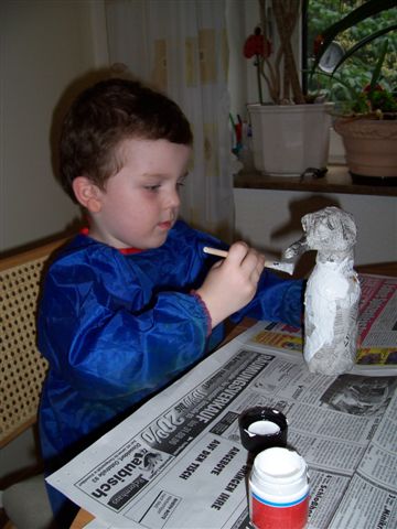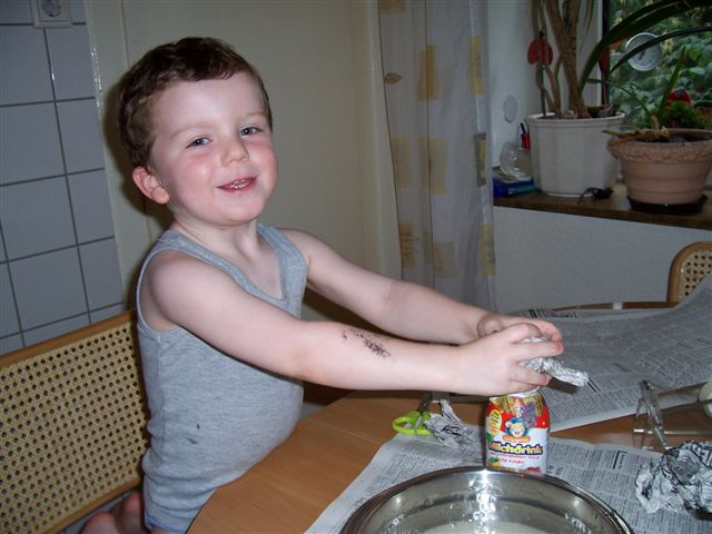 Den ersten Tag Kleister - auf der Figur, auf dem Tisch, im Gesicht, an den Händen, ....