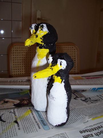 Der letzte Schliff fehlt noch: die schon auf der Innenseite weiß bemalten schwarzen Flügel und die Watschelfüße.