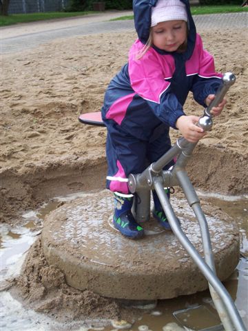 ...übt sich der Pilot im Sandschlammbaggern.