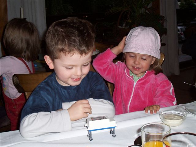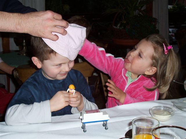 sich selbst überredet, den Papi zu überzeugen mit beiden Kids des Abends noch