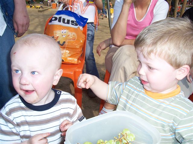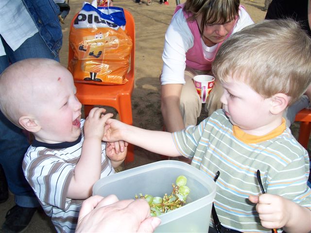 Dylan füttert Joris von Birkchen mit Weintrauben - er selbst wollte keine.