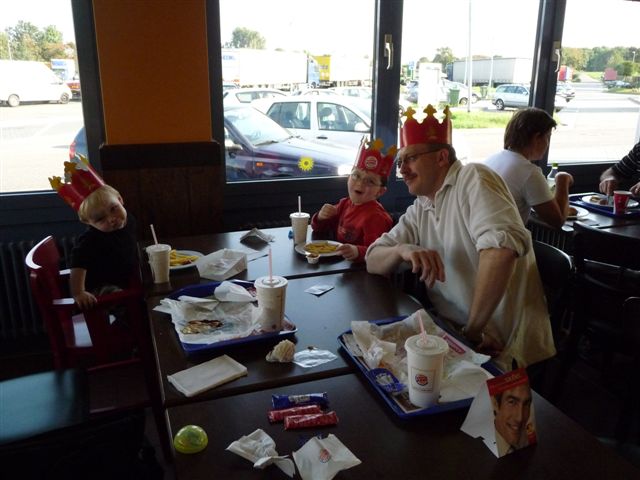 auf einem Rastplatz - Lars ist happy, dass es dort Burger & Co. gibt - klar dass