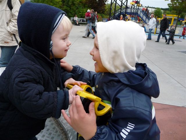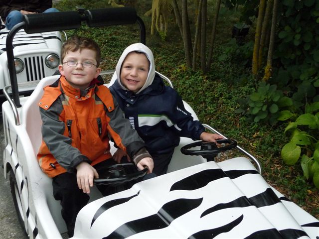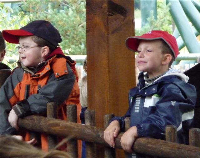 Lars und Luca warten auf die Fahrt mit dem Raupenritt.