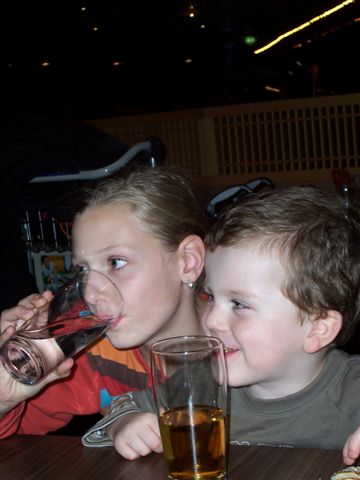 ....versuchte sie den Zwerg zu beschwören, dass er doch eigentlich ihr Sohn sei. An seinem Grinsen seht ihr, dass er weiß, wohin er gehört, denn er scheint sagen zu wollen "Red Du nur.....ich denk mir meinen Teil." Scherz beiseite, die beiden hatten einfach einen Riesen Blödelmachspaß zusammen.