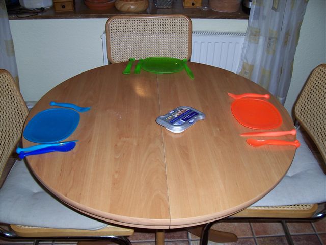 "Geschirr und Besteck" aus dem Kinderzimmer genommen und den Tisch